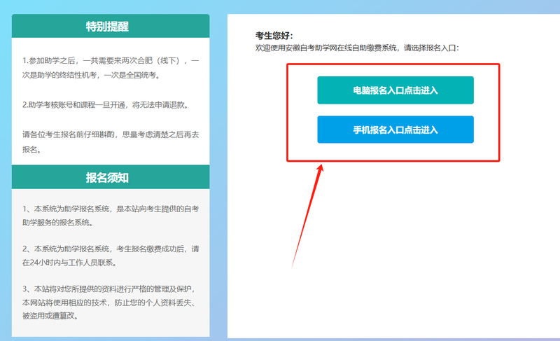 二、安徽自考助学收费标准 安徽自考助学报名分为两种班型: 1、单科班,按照科目来报名,考几门科目报几门科目,单科助学收费标准是300元一门。 2、全科整专业,按照整专业进行报名,全科收费标准2000元一年,按年进行缴纳。 三、安徽自考助学报名流程 1、复制网址到浏览器打开 http://www.anhuizk.net/h-col-484.html 2、进入报名系统填写报名信息,完成缴费。 3、缴费成功之后,及时联系助学老师进行后续事项安排。 四、安徽自考助学报名专业